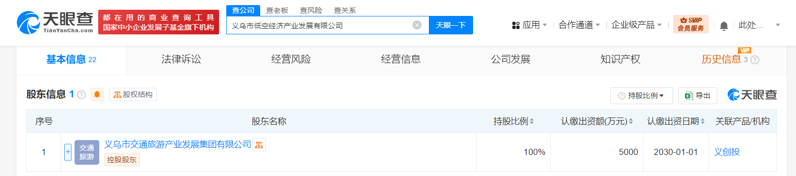 义乌市低空经济产业发展公司登记成立 注册资本5000万